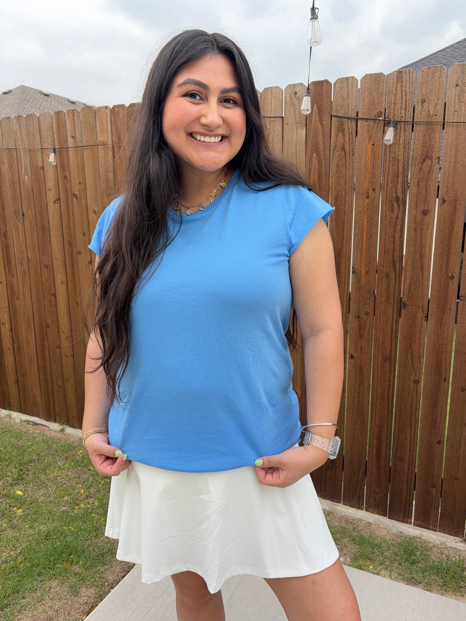 This Tee Will Become Your Favorite Bff. With A Classic Design That Is Cut From Soft Washed Fabric, It Shapes A Crew Neck, Cap Sleeves, And A Flattering Fit. Rock With High Waisted Shorts Or Pants, The Choice Is Yours.