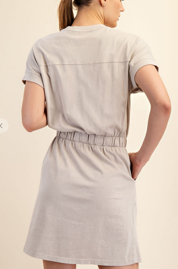 - Mineral washed cotton fabric - Relaxed fit - Crew neck - Short sleeve - Dropped shoulder - Elastic waistband - Side pockets